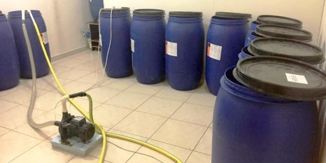 عثر بداخله على 3500 عبوة و 90 برميلا و 5 مضخات