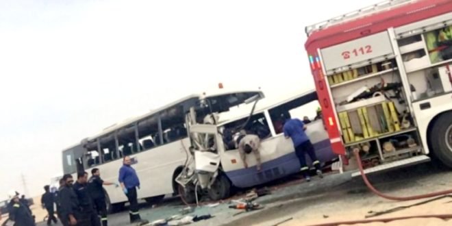 مصرع 15 شخصا وإصابة 3 بحادث مروع بين حافلتين