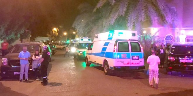 توفي مقيم آسيوي وأصيب 26 شخصا باختناق جراء حريق داهم منزلا قديما في منطقة سلوى حيث اندلع في الطابق الأول وامتد إلى الثاني.