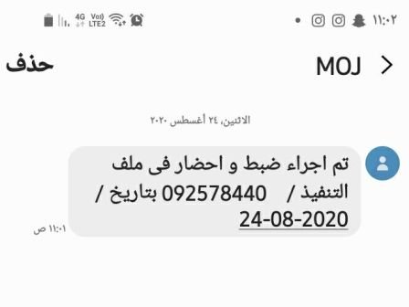 رسالة نصية تعلن المواطن بأمر ضبطه وإحضاره